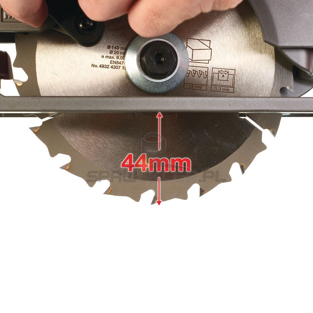 Maks. głębokość cięcia przy 90° (mm): 44
