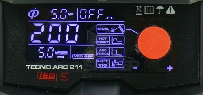 Czytelny wyświetlacz LED umożliwia dokładną regulację urządzenia, zapewnia stabilne parametry i wysoką jakość spawania.