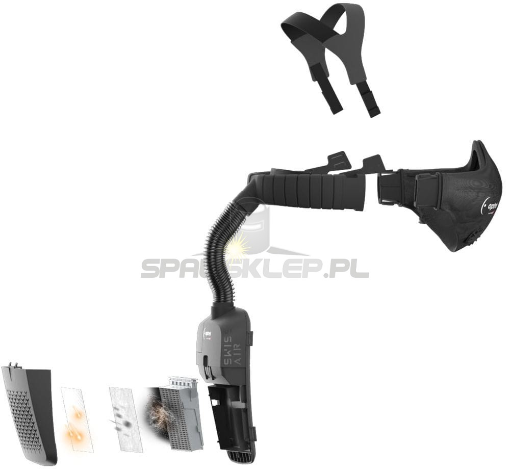 System oddechowy Optrel SWISS AIR TH3 4700.010 dostarcza świeże w pełni przefiltrowane powietrze wprost do półmaski użytkownika. Unikalna szwajcarska konstrukcja nie wymaga noszenia przyłbicy oraz nie wywołuje niekorzystnego oziębiania twarzy czy wysuszania oczu.
