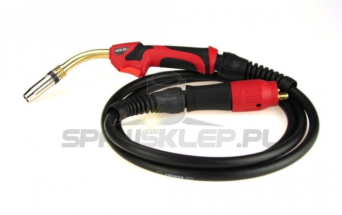 Profesjonalny uchwyt spawalniczy do urządzeń MIG. Prąd spawania dla cyklu pracy 60%: 250A (gaz CO2), 220A (mieszanka Ar/CO2). Długość 4 metry.